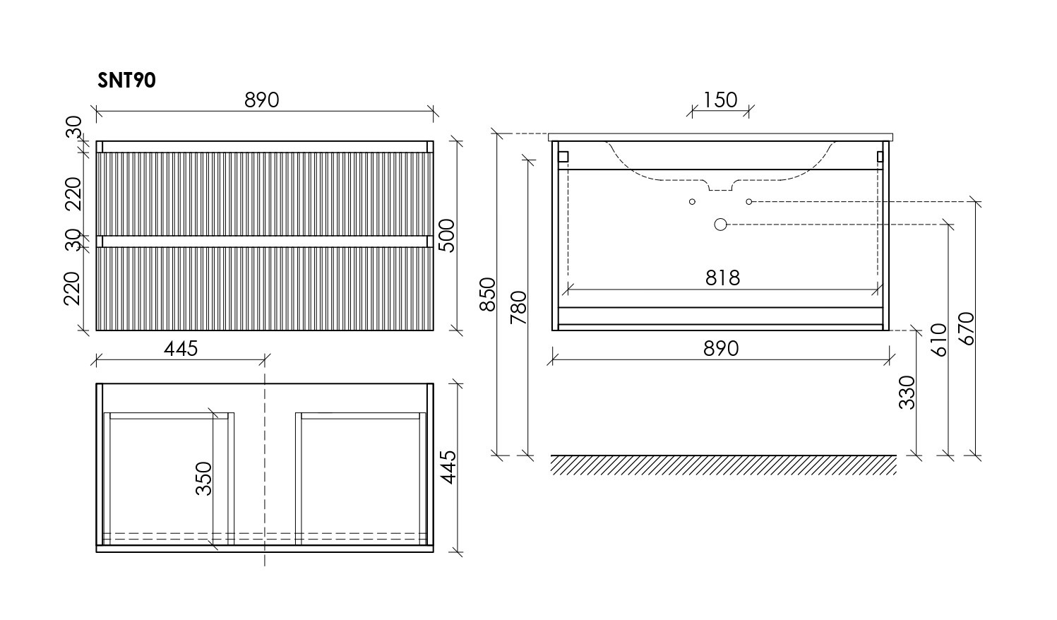 - Тумба подвесная Snob T c двумя ящиками оснащенными доводчиками скрытого монтажа с системой плавного закрывания. Каркас и фасад тумбы выполнен из МДФ, покрытие ПВХ - пленка в цвете «Bianco». Размер 890х445х500