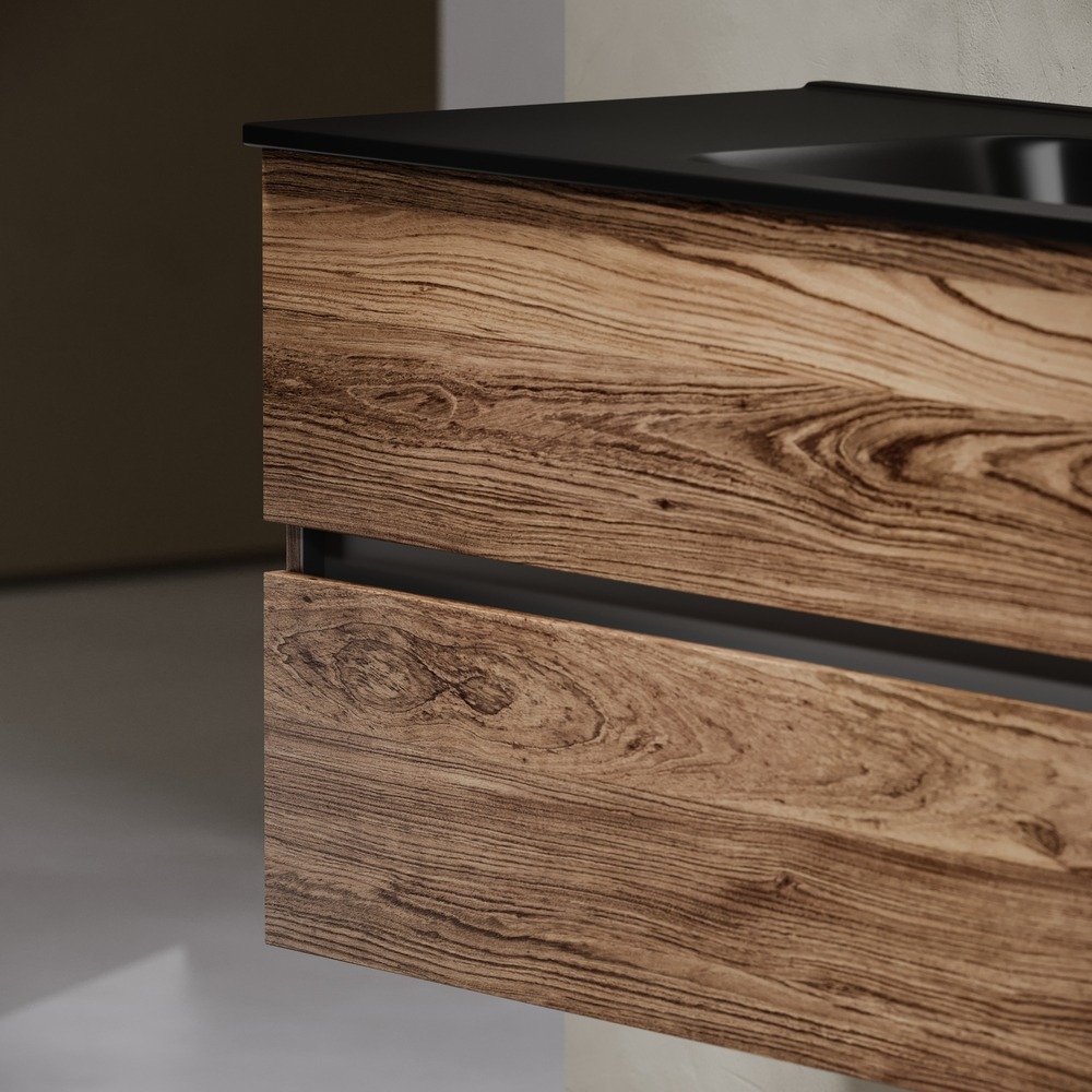 - Тумба подвесная Urban c двумя ящиками оснащенными доводчиками скрытого монтажа с системой плавного закрывания, а также с ручкой Gola по всей длине тумбы. Каркас тумбы и фасад выполнен из ЛДСП в цвете «дуб чарльстон».
