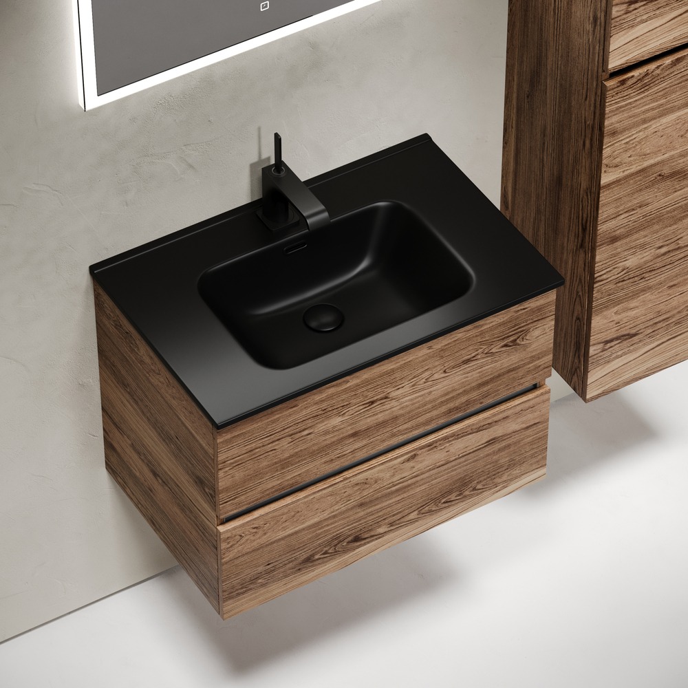 Тумба подвесная Sancos Urban 70 см UR70ECH с доводчиком и раковиной-столешницей Element CN7007MB, цвет дуб чарльстон.