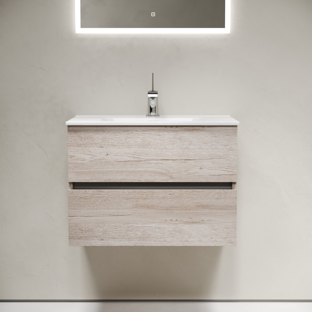 Тумба подвесная с раковиной-столешницей Sancos Urban 70 см UR70EG, дуб галифакс натуральный (раковина Element CN7007) - фото