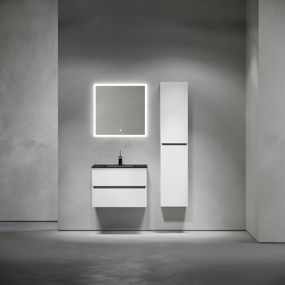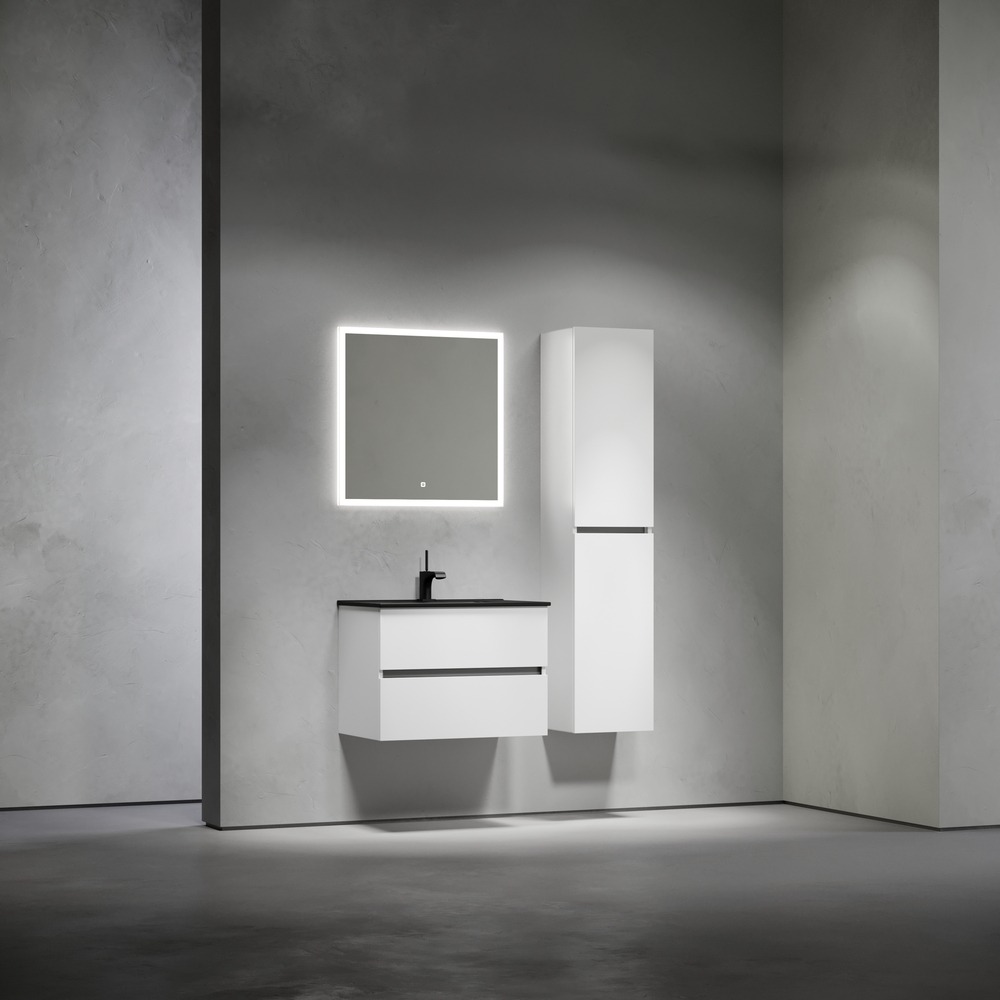 Тумба подвесная Sancos Urban 70 см UR70W c доводчиком и раковиной-столешницей Element CN7007MB, цвет белый глянец.