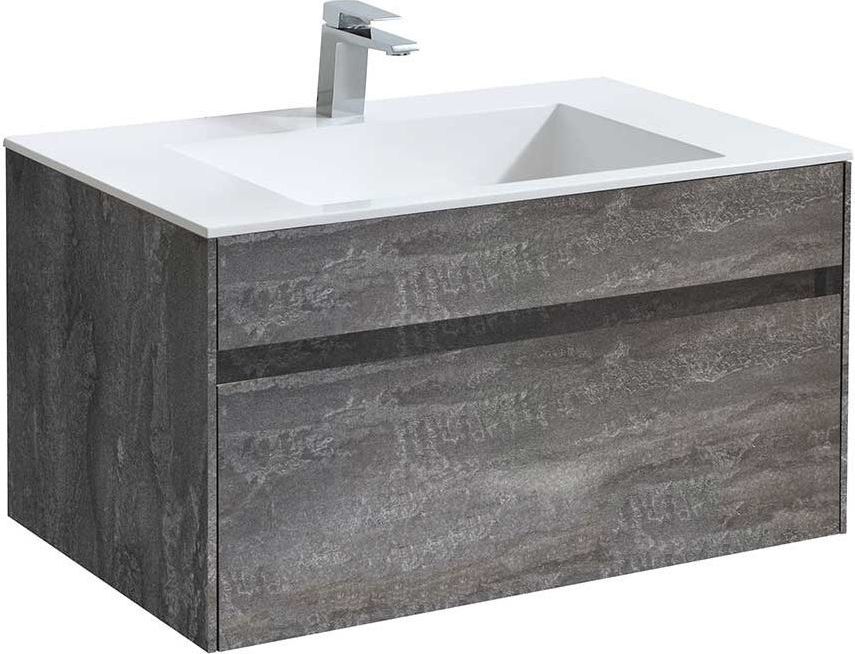 Тумба подвесная Vincea Chiara 80 см с раковиной из искусственного камня VCB-13800W, система хранения: 1 выкатной ящик с доводчиками, цвет - серый камень.