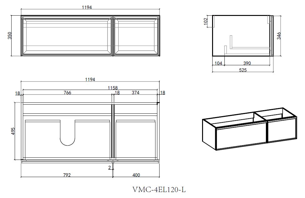 Характеристики тумба с раковиной, тумба с раковиной-столешницей Vincea (VMC-4EL120MG-L+VCB-4EL120MW-L)