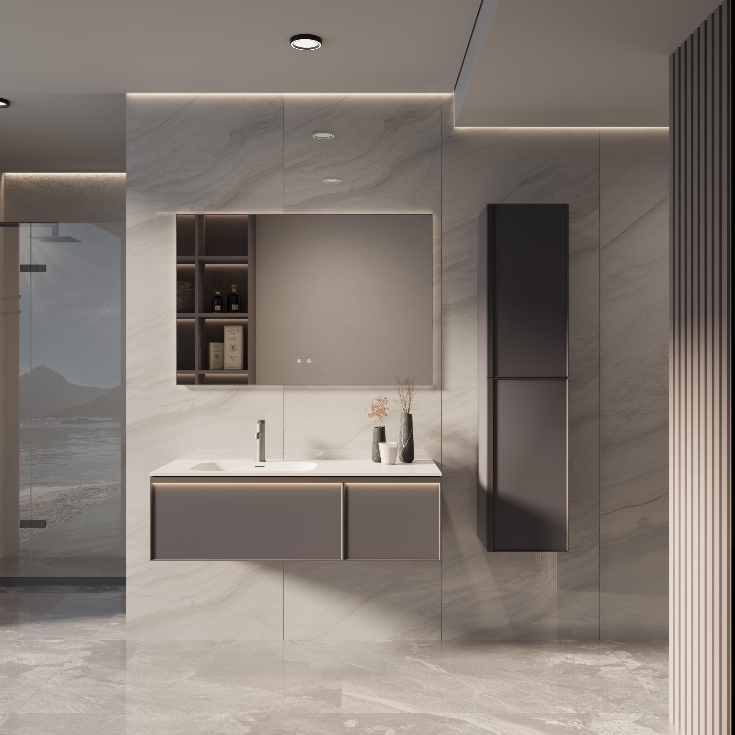 Тумба подвесная с раковиной Vincea Elise 120 см VMC-4EL120MG-L, серый матовый