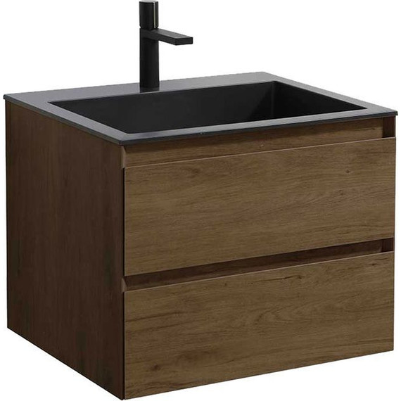 Тумба подвесная с раковиной Vincea Luka 60 см VMC-2L600TO (раковина черная VCB-13600B), дуб табак