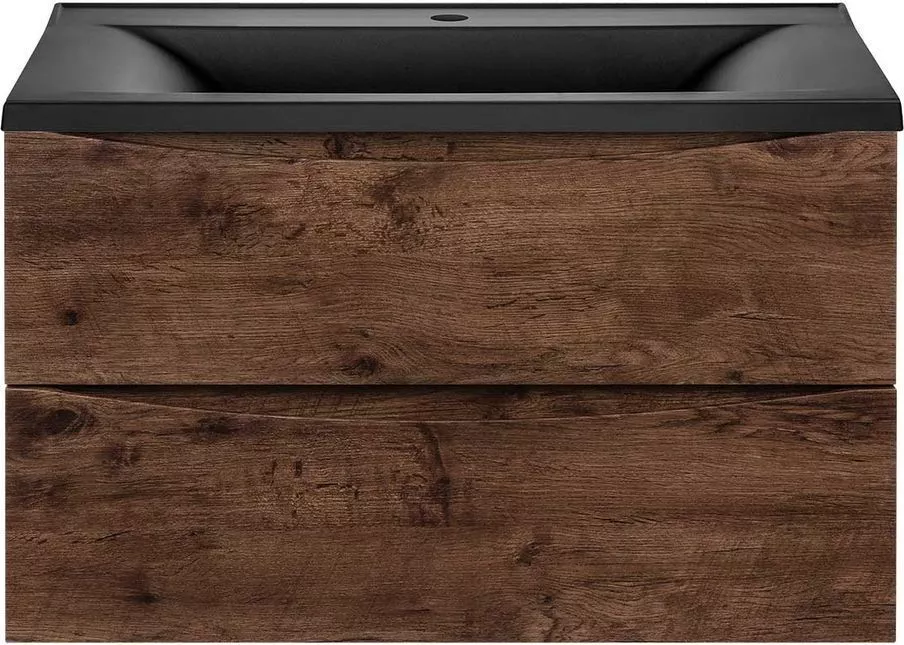 Тумба подвесная с раковиной Vincea Mia 80 см VMC-2MA800RW (раковина черная матовая VCB-3M800B), тёмное дерево