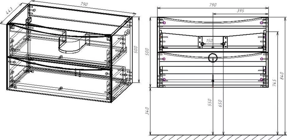 Характеристики тумба с раковиной Vincea (VMC-2MA800RW+VCB-3M800B)