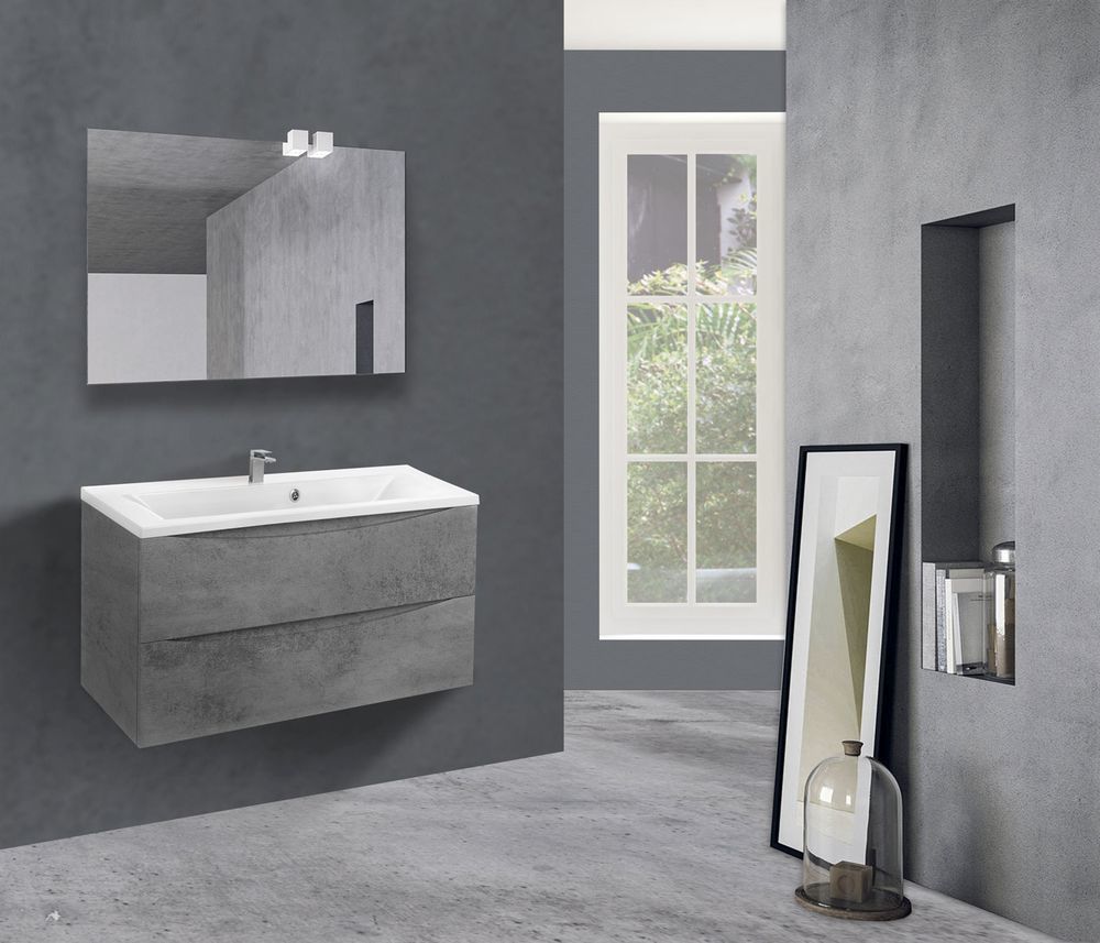 Тумба подвесная Vincea Mia 90 см с раковиной из искусственного камня VCB-3M900W, система хранения: 2 выкатных ящика с доводчиками, цвет - бетон.