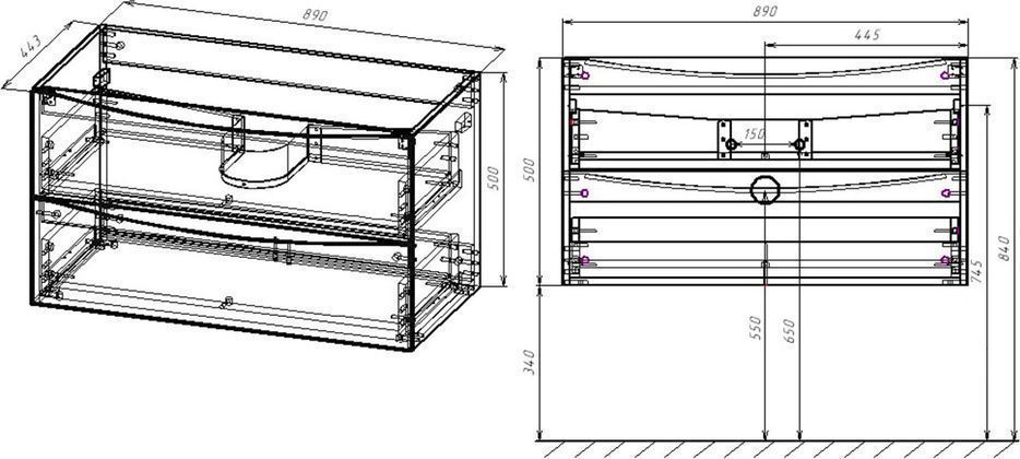 Характеристики тумба с раковиной Vincea (VMC-2MA900BT+VCB-3M900W)
