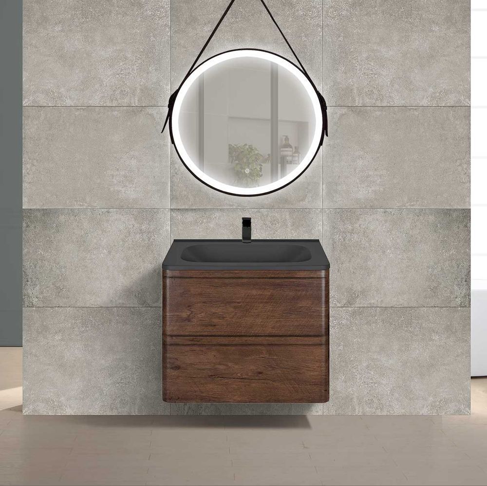 Тумба подвесная с раковиной Vincea Vico 60 см VMC-2V600RW (раковина черная VCB-2VP600B), тёмное дерево