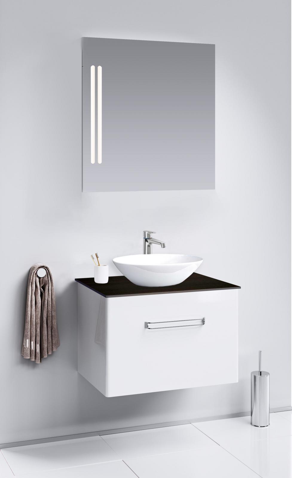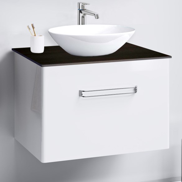 Тумба подвесная со столешницей из керамогранита Aqwella Нео 80 см Neo.01.08/1/31588, цвет тумбы - белый, цвет столешницы - черный. Раковина приобретается отдельно.