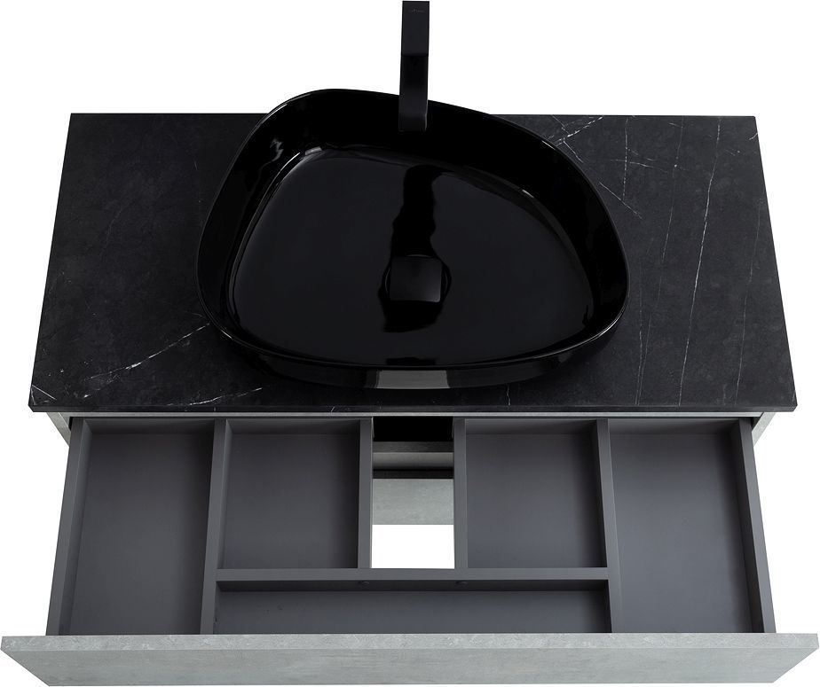 Тумба подвесная со столешницей Cezares Molveno 100 см, цвет тумбы - Beton, цвет столешницы - Marmo Nero Opaco (Чёрный матовый мрамор). Раковина и смеситель приобретаются отдельно.