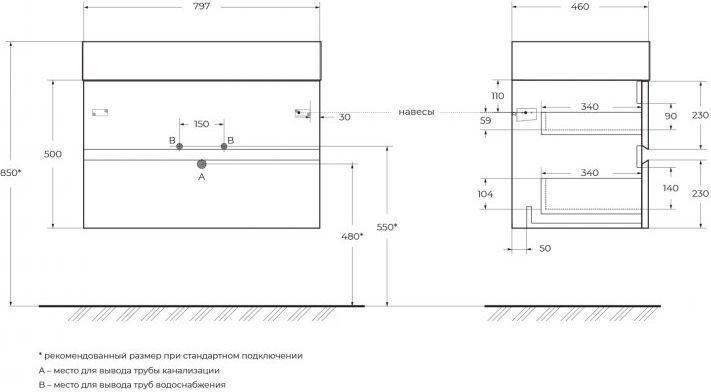 Характеристики тумба со столешницей Cezares (MOLVENO 46-80-2C-SO-NC+KEP-80-MNO)