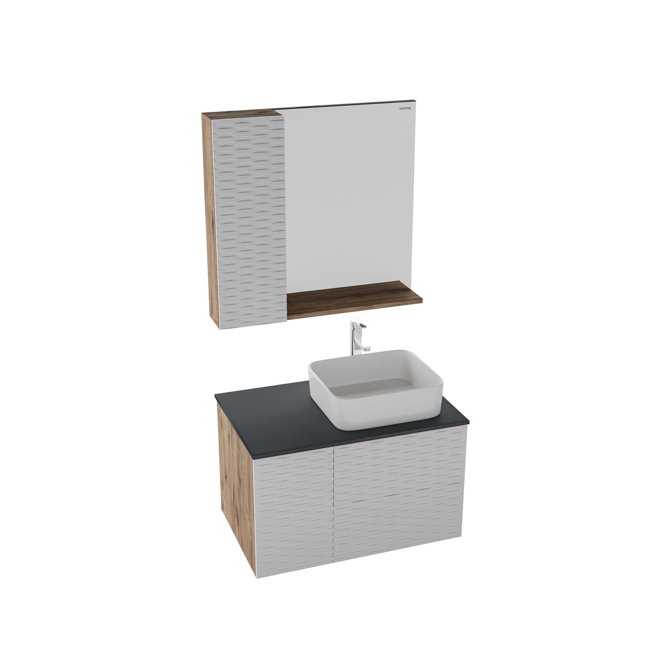 Тумба подвесная со столешницей Grossman Альба 80 см 108011 (раковина в комплекте) веллингтон/белая