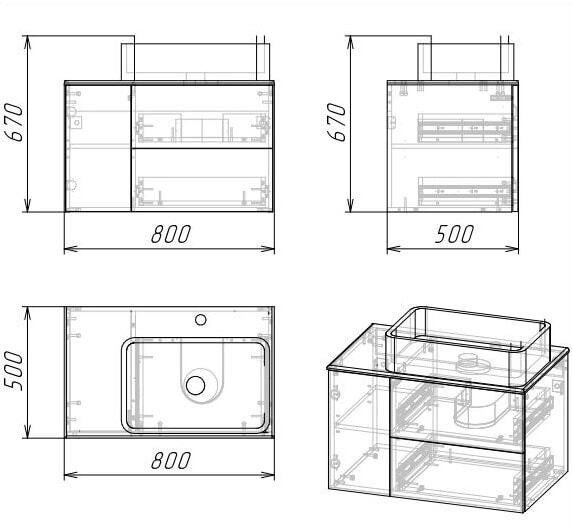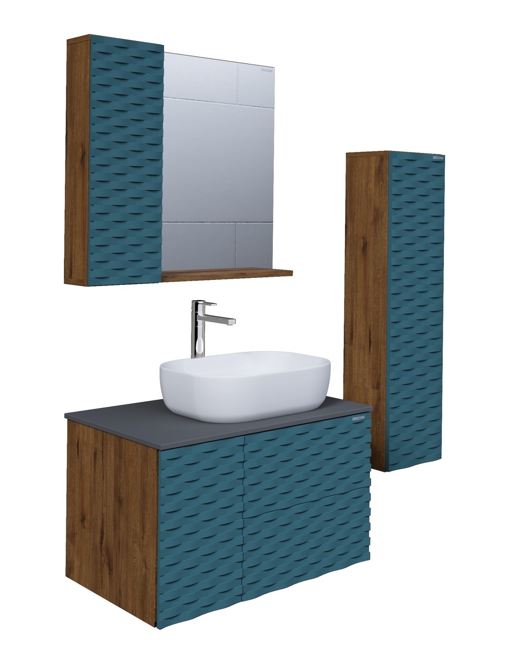 Тумба подвесная со столешницей Grossman Альба 80 см 108012 (раковина в комплекте) веллингтон/бриз