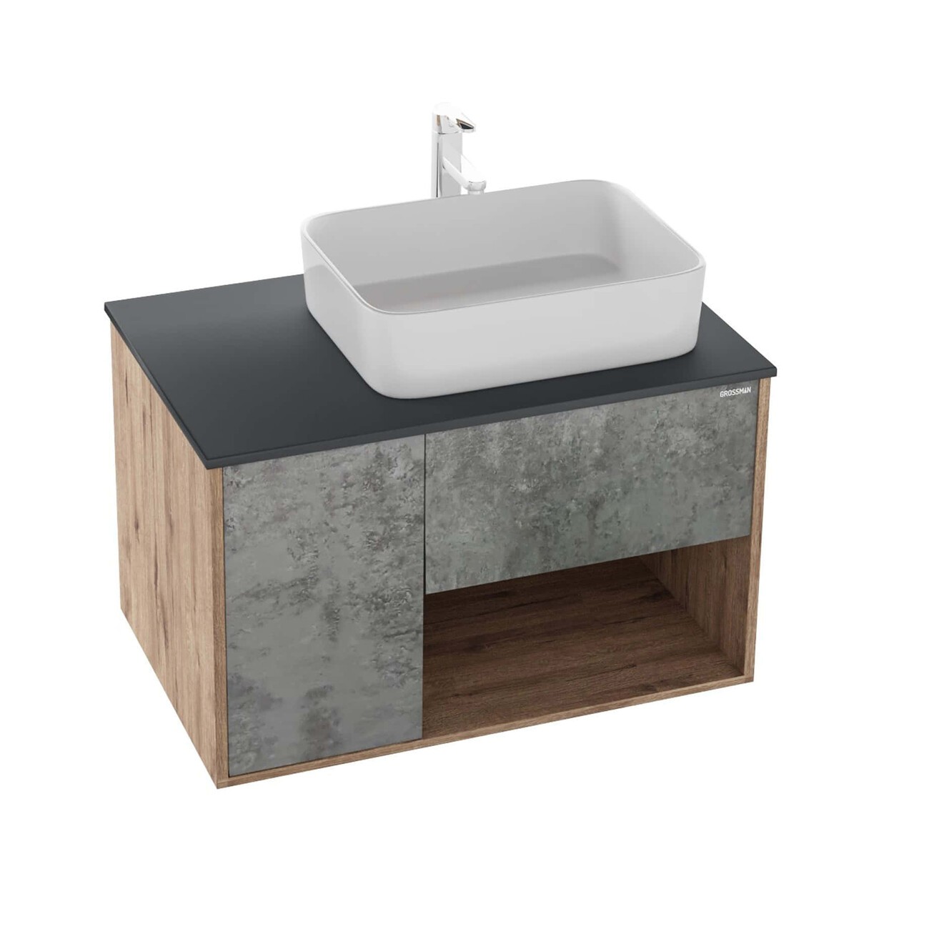 Тумба подвесная со столешницей Grossman Бруно 80 см 108008 (раковина в комплекте) веллингтон/бетон