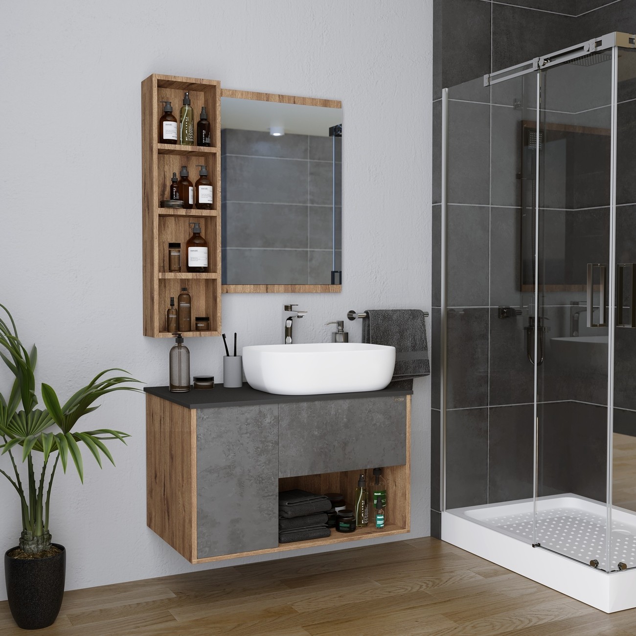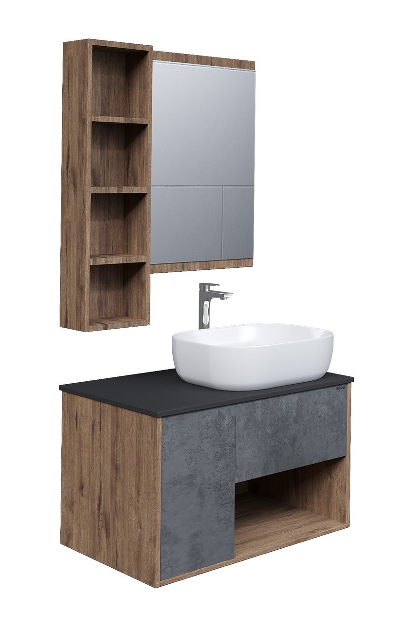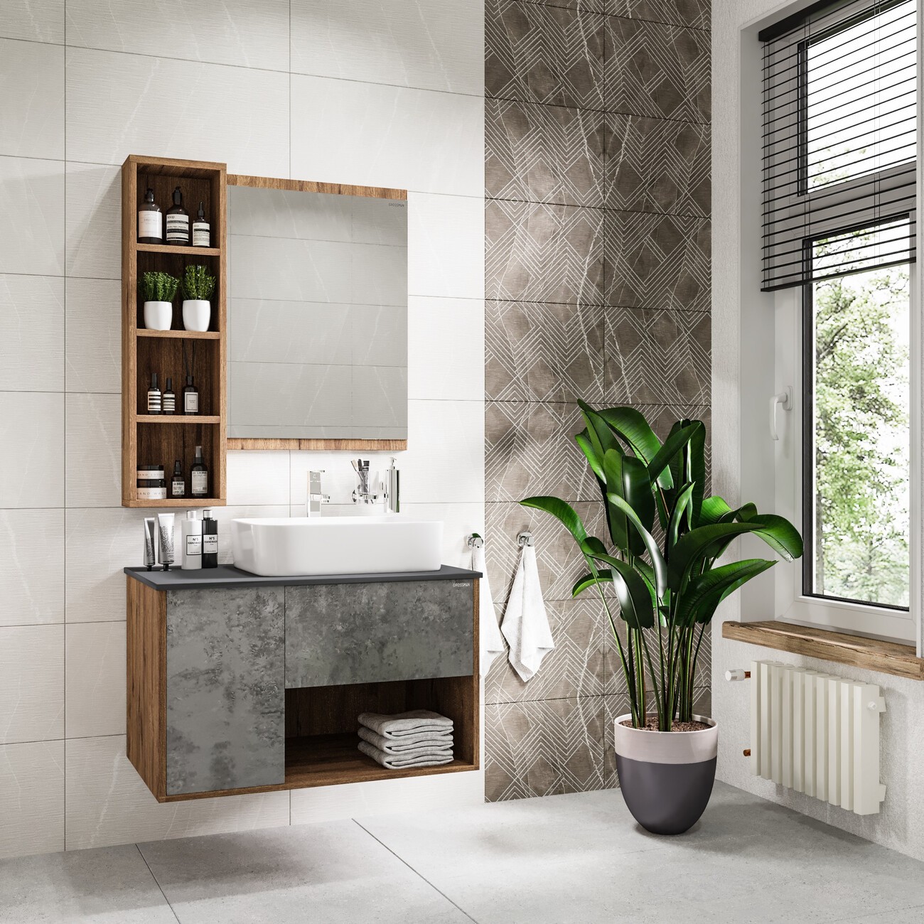 Тумба подвесная со столешницей Grossman Бруно 80 см с раковиной Grossman Classic GR-3016 48 см, цвет веллингтон/бетон.