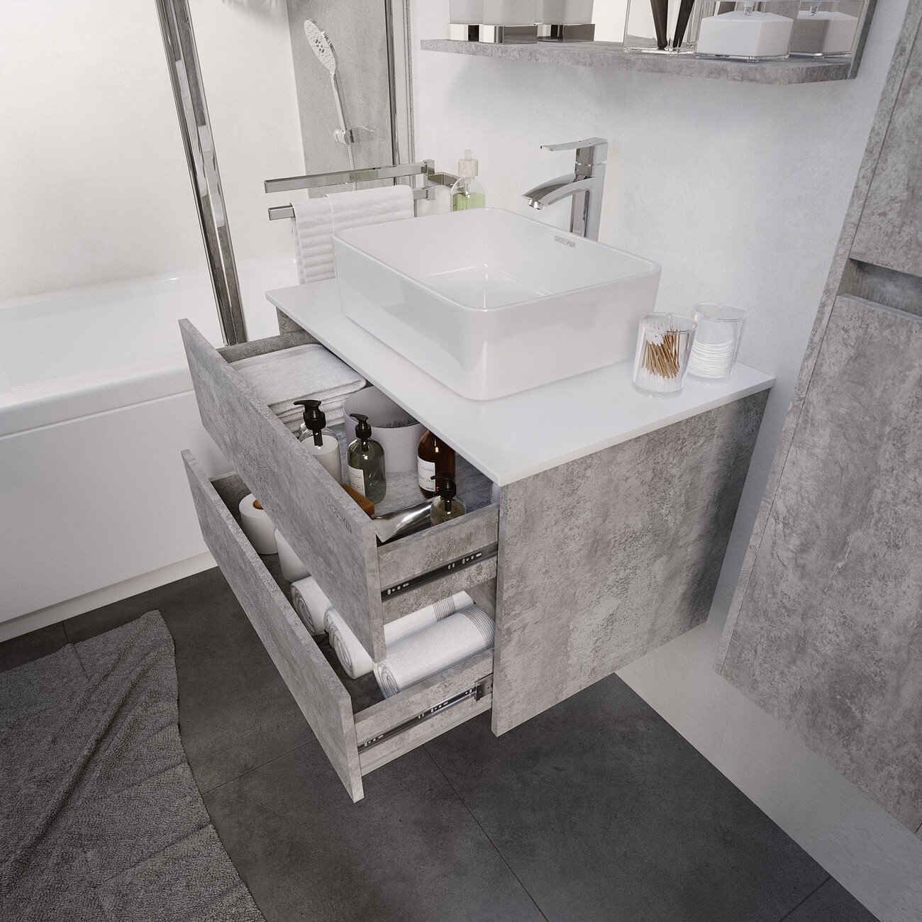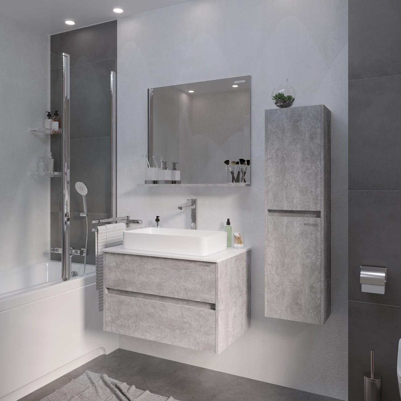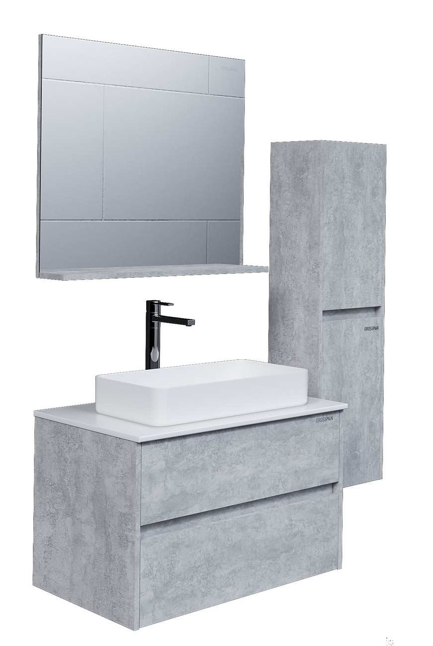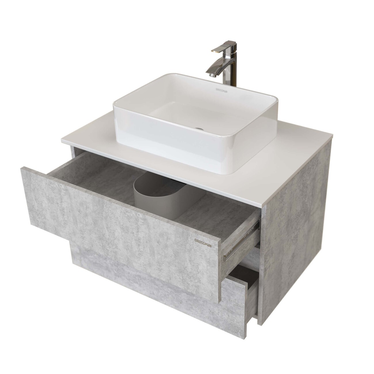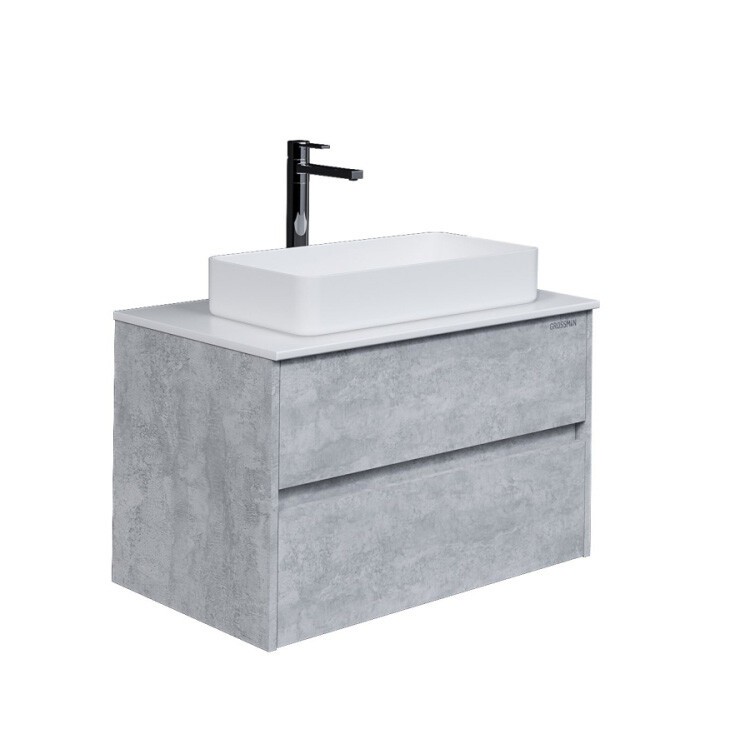 Тумба подвесная со столешницей Grossman Эдванс 80 см 108010 (раковина в комплекте) цемент светлый