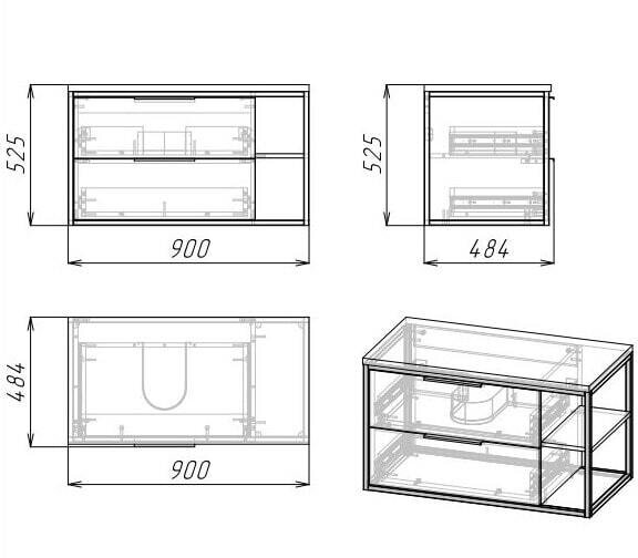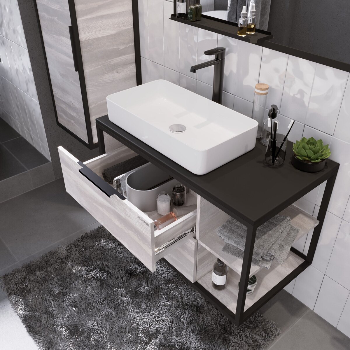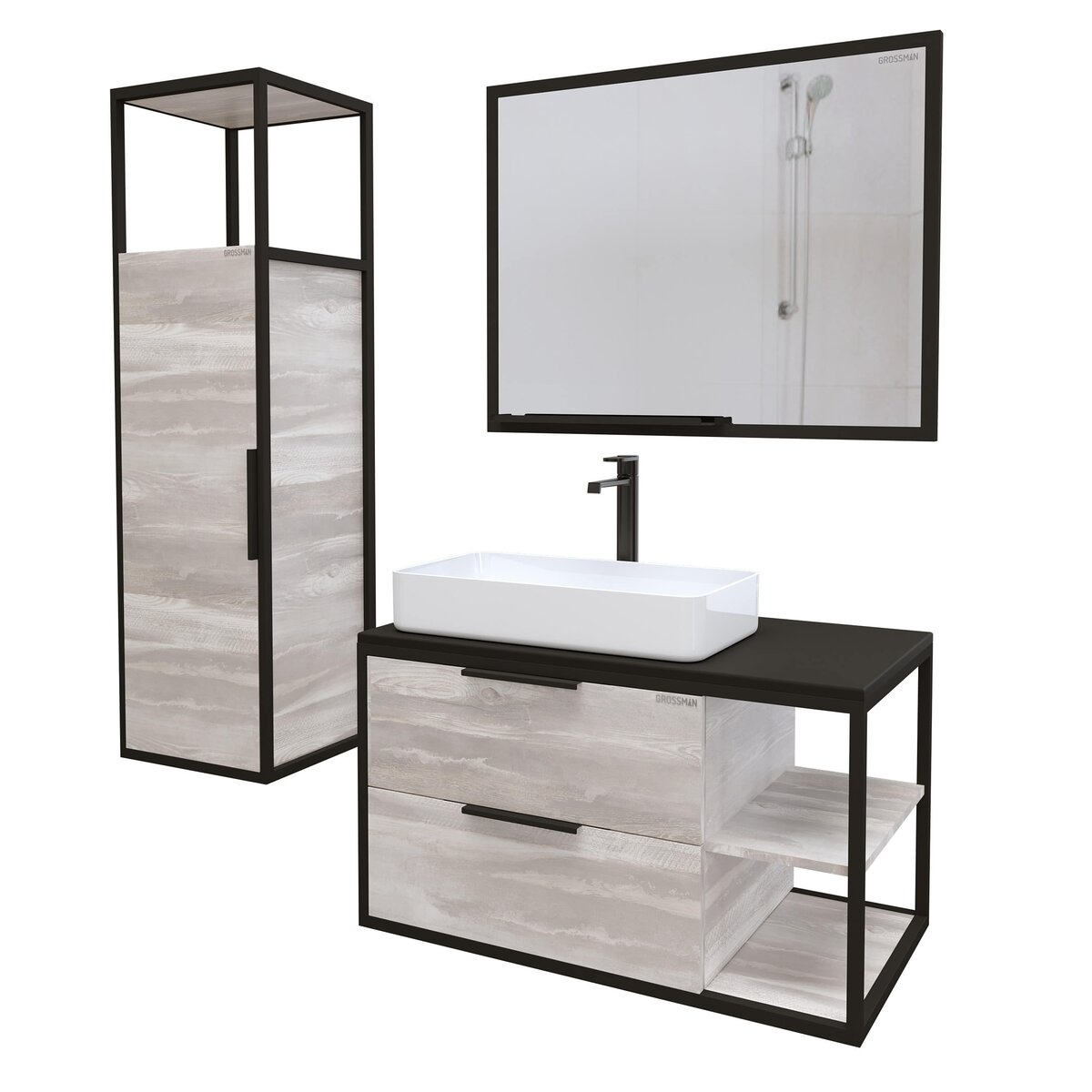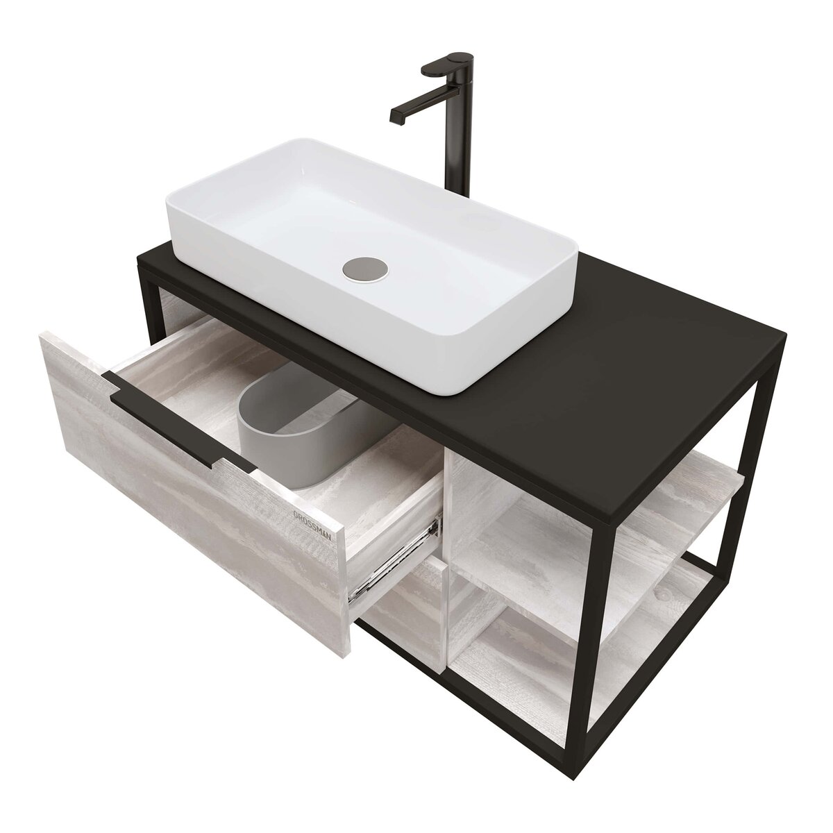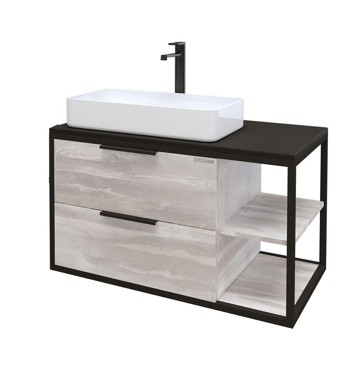 Тумба подвесная со столешницей Grossman Лофт 90 см 109002 (раковина в комплекте) шанико/металл чёрный