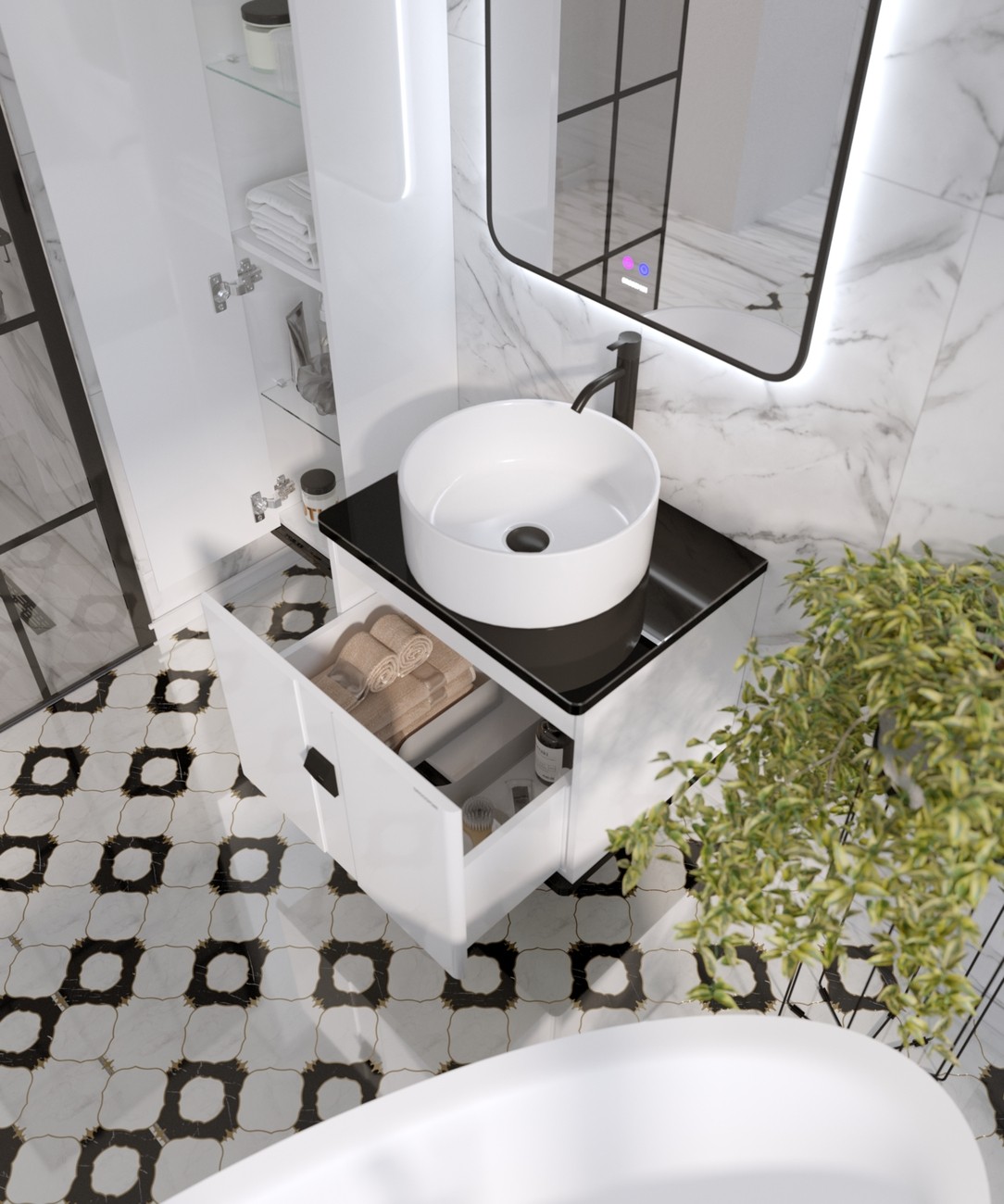 Тумба подвесная со столешницей Grossman Норма 60 см 106016 (раковина в комплекте) белый глянец