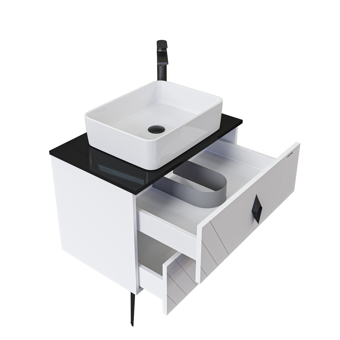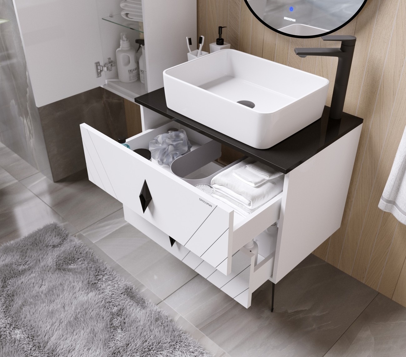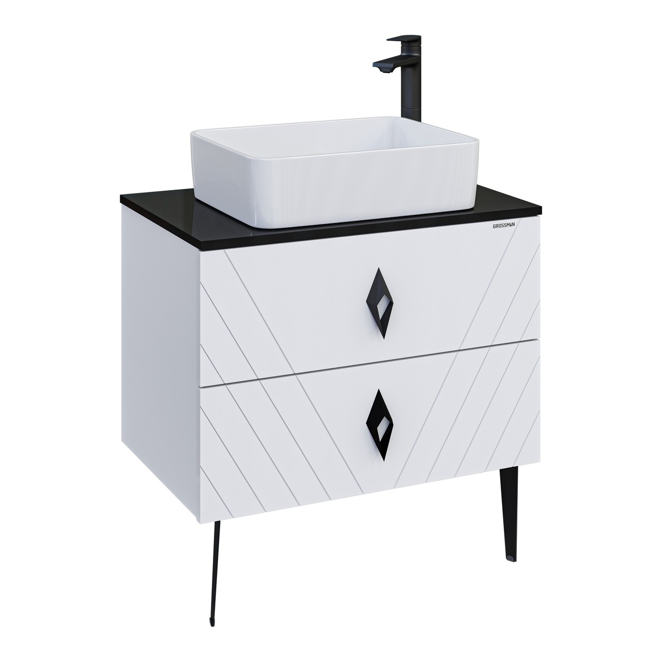 Тумба подвесная со столешницей Grossman Вива 70 см 107012 (раковина в комплекте) белый глянец