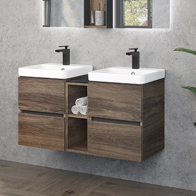 Тумбы подвесные с раковинами Comforty Дартфорд 110 см, дуб тёмно-коричневый