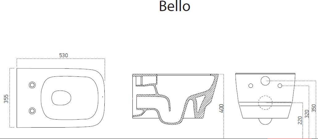 Унитаз-биде подвесной безободковый Boheme Bello. Цвет белый глянцевый. Сиденье с крышкой приобретается отдельно.