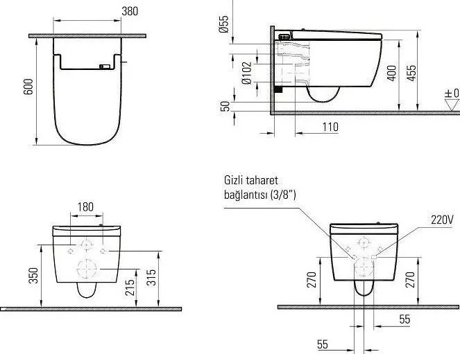- Оснащение: водонагреватель для подогрева воды для биде / пульт ДУ / сенсор, регистрирующий присутствие человека для активации определенных функций унитаза