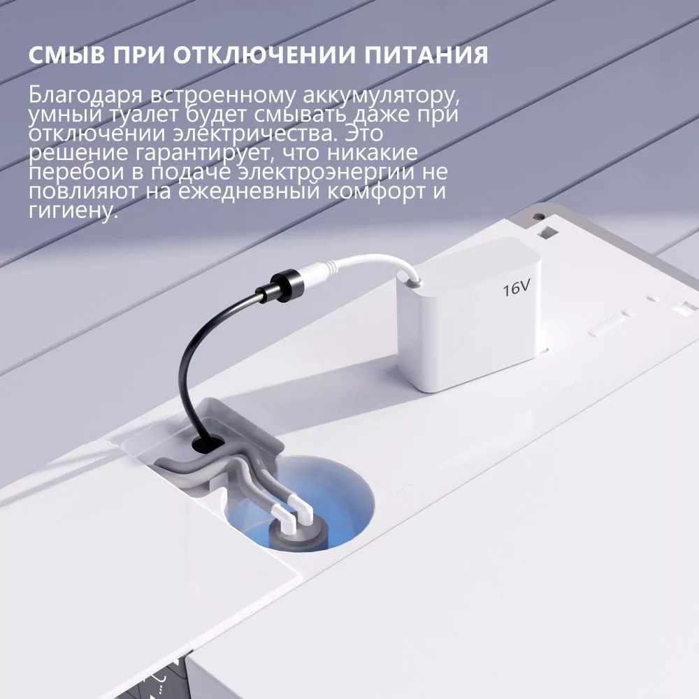 - встроенный бачок обеспечивает мощный смыв даже при слабом давлении воды