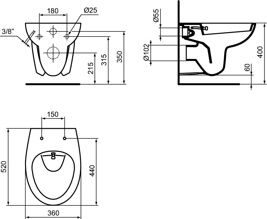 Характеристики унитаз подвесной,унитаз-биде Ideal Standard (W705501)
