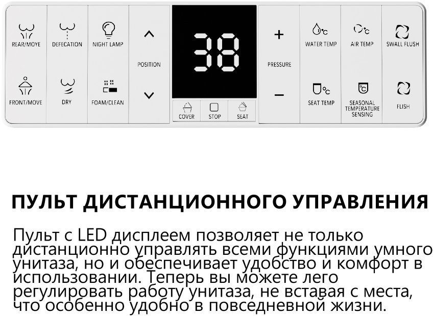- Модель оснащена электронной системой управления, позволяющей тонко настраивать параметры использования. Встроенная функция биде предлагает регулировку температуры и напора воды, обеспечивая индивидуальный подход к гигиеническим процедурам. Для дополнительного комфорта предусмотрено подогреваемое сиденье с возможностью выбора оптимальной температуры, а также функция сушки тёплым воздухом.