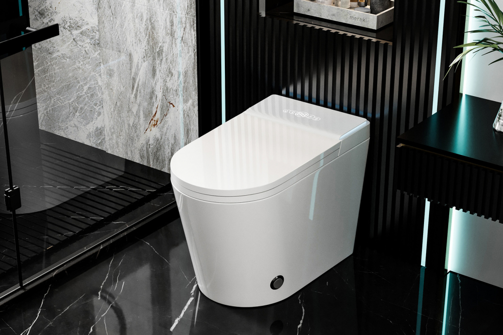 Унитаз-биде приставной электронный безободковый с импульсным смывом Abber Bequem AC1117S с крышкой микролифт