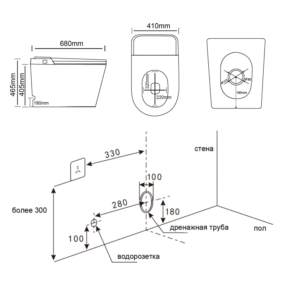 - круговой смыв без бачка