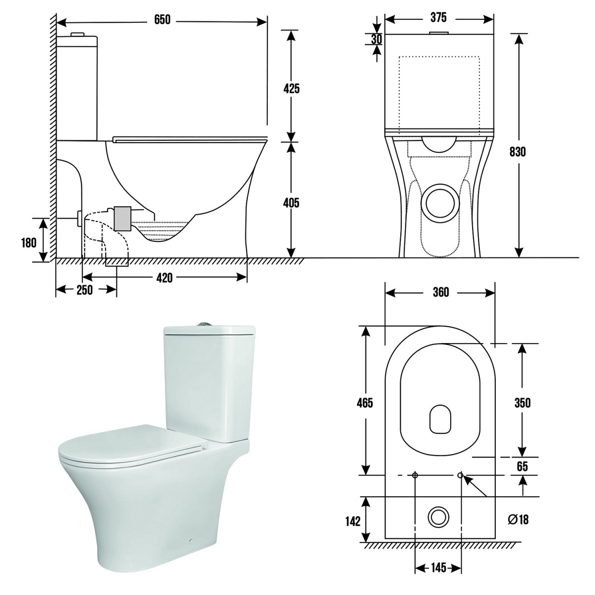 - Размеры унитаза составляют 375х650х830 мм, что позволяет удобно разместить его в помещениях разного размера. Система слива «Торнадо» обеспечивает мощное и эффективное смывание, экономя воду и предотвращая засоры. Быстросъемное сиденье с функцией «Микролифт» из прочного дюропласта гарантирует комфорт и безопасность: крышка плавно опускается без хлопков и легко снимается для тщательной очистки.