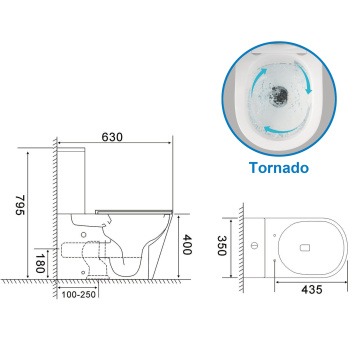 - Максимальная гигиеничность: Благодаря безободковой конструкции и системе слива "Торнадо".