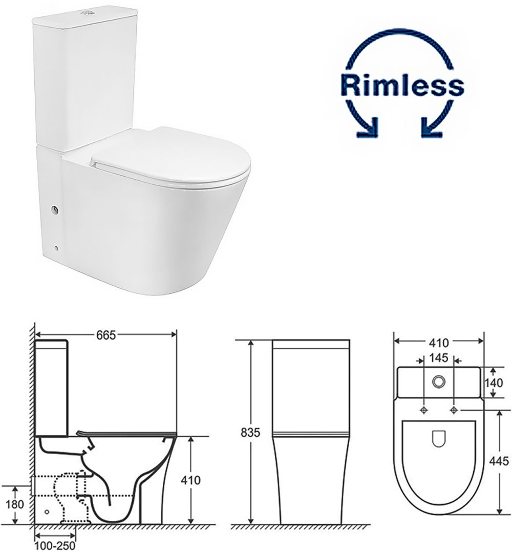 Характеристики унитаз безободковый,унитаз-компакт Azario (AZ-1299A)