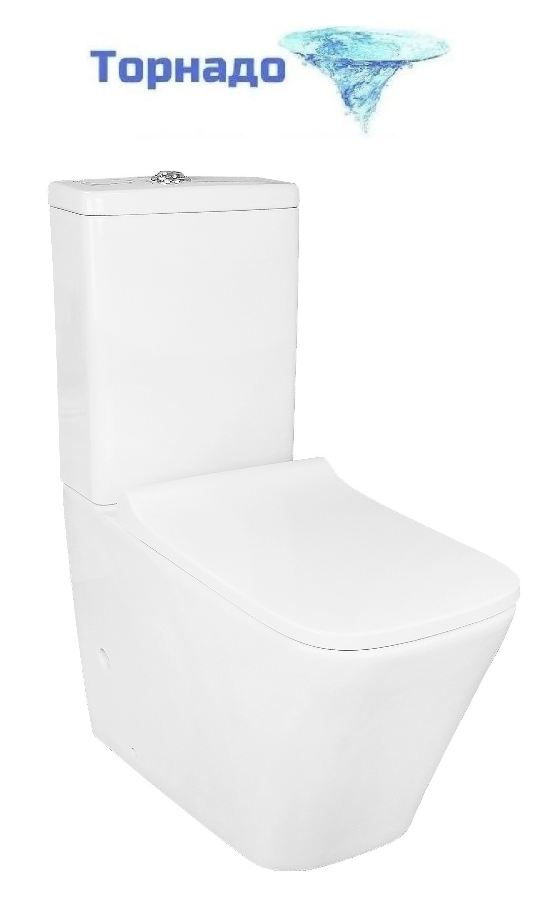 Унитаз-компакт безободковый Azario Quadro AZ-2175 UQ1 с крышкой микролифт, белый (Система смыва торнадо)
