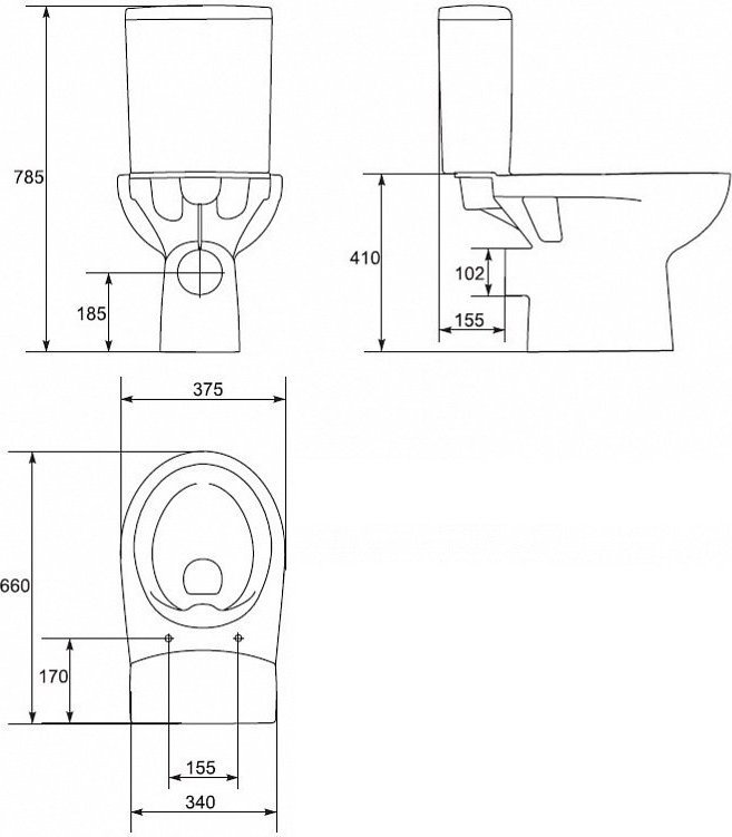 Характеристики унитаз безободковый,унитаз-компакт Cersanit (KO-NTR011-3/5-COn-DL)