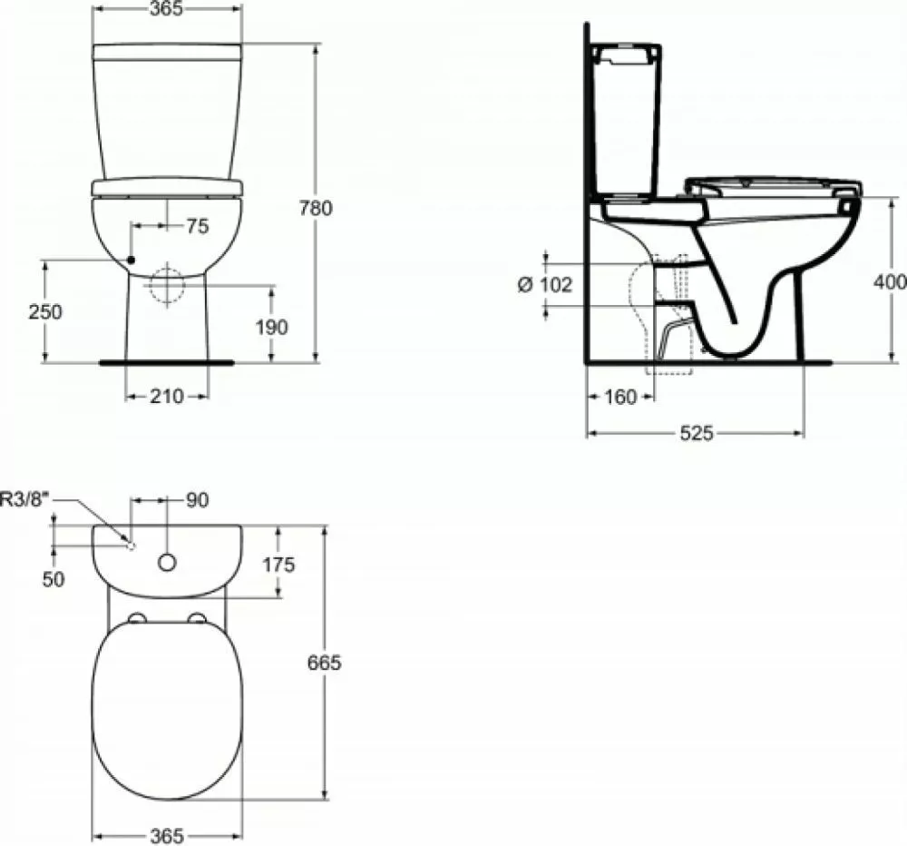 Унитаз-компакт Ideal Standard Connect Classic E804801, бачок Arc E785601, двойной смыв 3/6, нижняя подводка, с сиденьем и крышкой с функцией плавного закрытия (с микролифтом) E712701, с крепежом TT0257919.