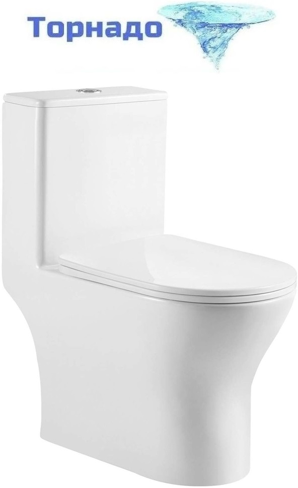 - Современный и гигиеничный унитаз-моноблок безободковый с системой смыва Tornado и крышкой-сиденьем из дюропласта (Soft-Close) сочетает в себе эргономичный дизайн и инновационные технологии.