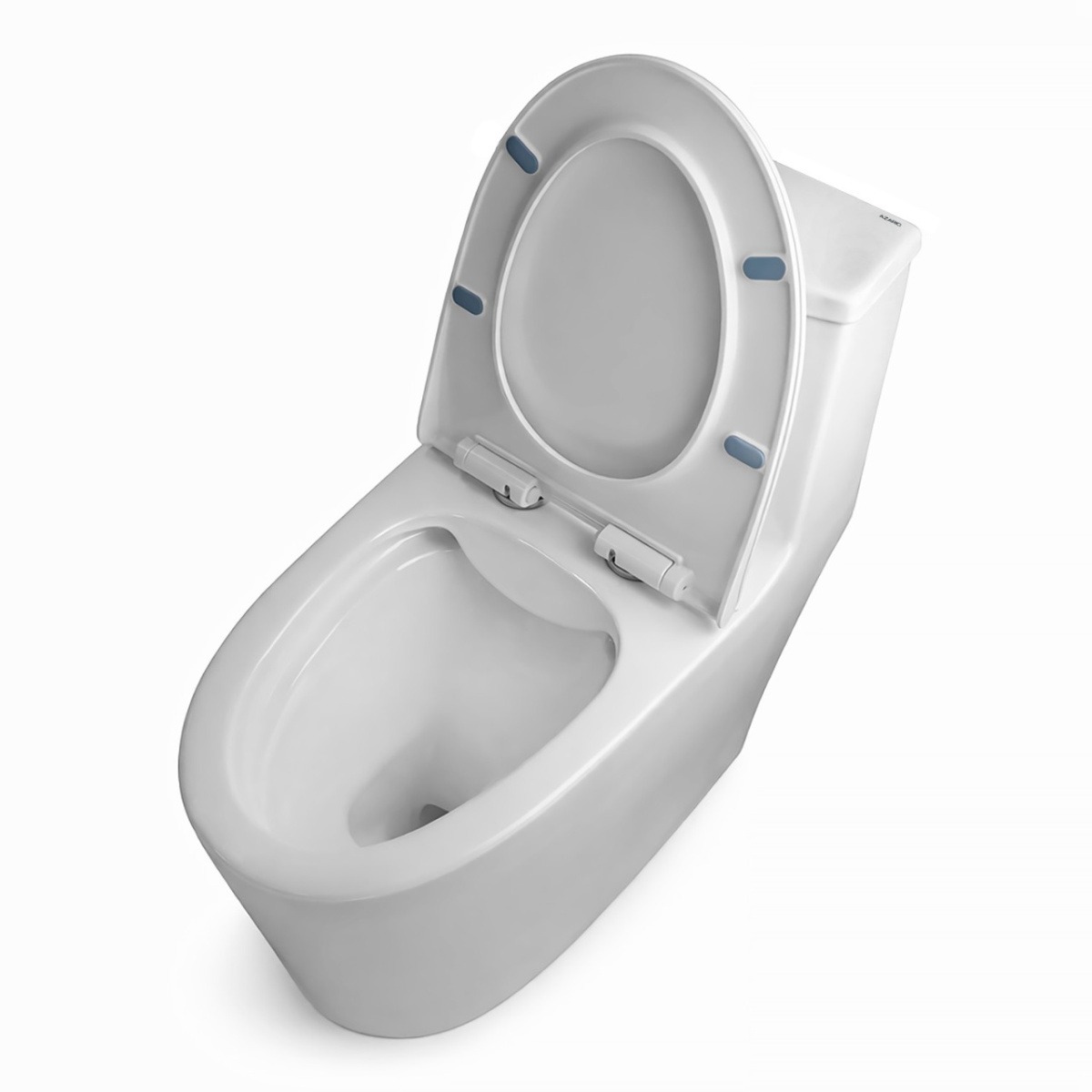 - В комплект входит быстросъемное сиденье с функцией "Микролифт" из прочного дюропласта — оно мягко опускается, предотвращая хлопки крышки и продлевая срок службы изделия.
