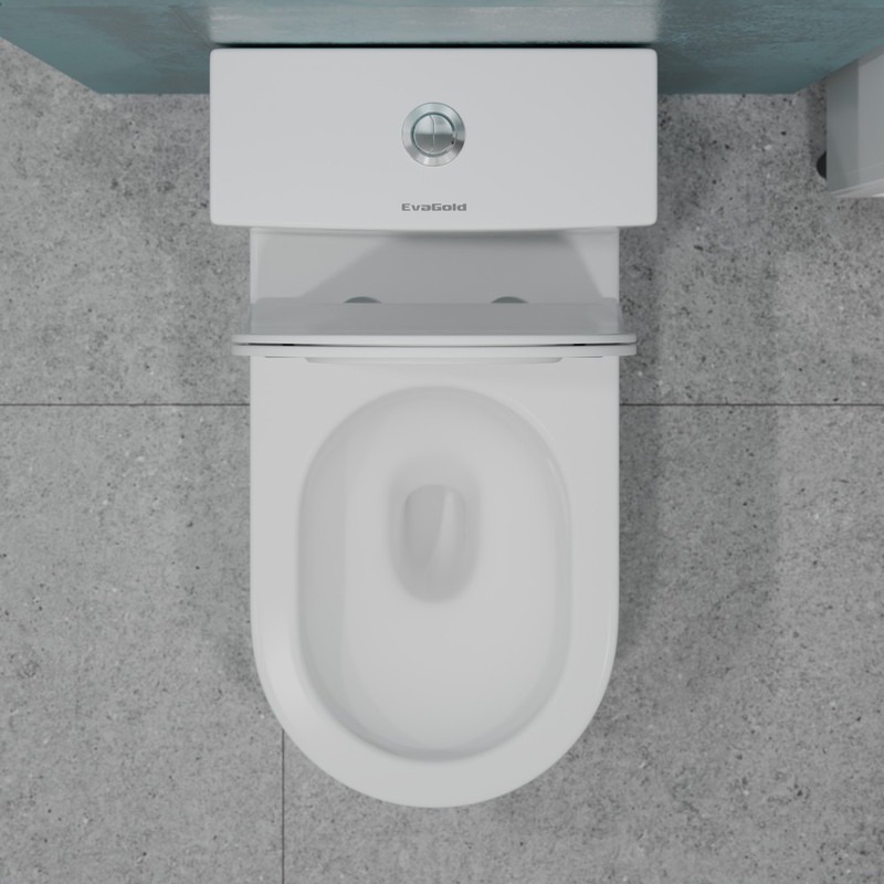 Унитаз-моноблок безободковый EvaGold EG050011, круговой слив, 2 режима смыва воды, сиденье с тонкой крышкой микролифт, цвет белый.