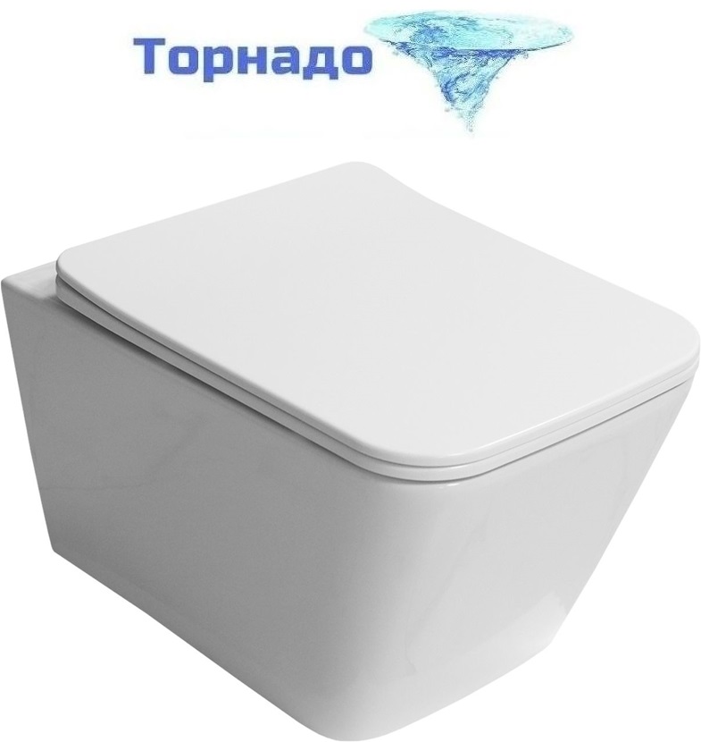 Унитаз подвесной Azario Indor AZ-9004WT с тонкой крышкой микролифт (Система смыва Торнадо)