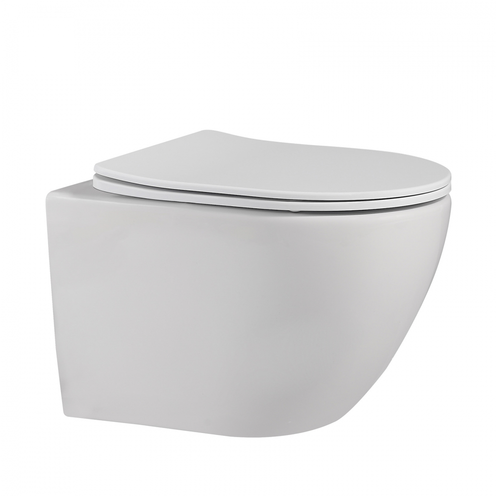 Унитаз подвесной безободковый Abber Bequem AC1100MW с крышкой микролифт, белый матовый