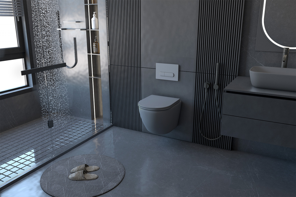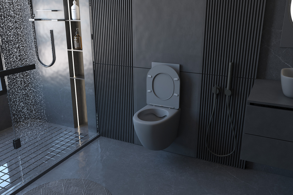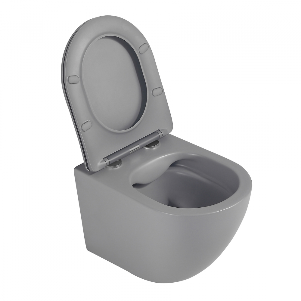 Унитаз подвесной безободковый Abber Bequem AC1101MG с крышкой микролифт, серый матовый