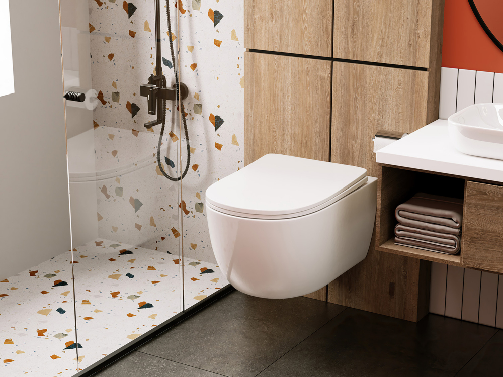 Унитаз подвесной безободковый Abber Bequem AC1104 с тонкой крышкой микролифт