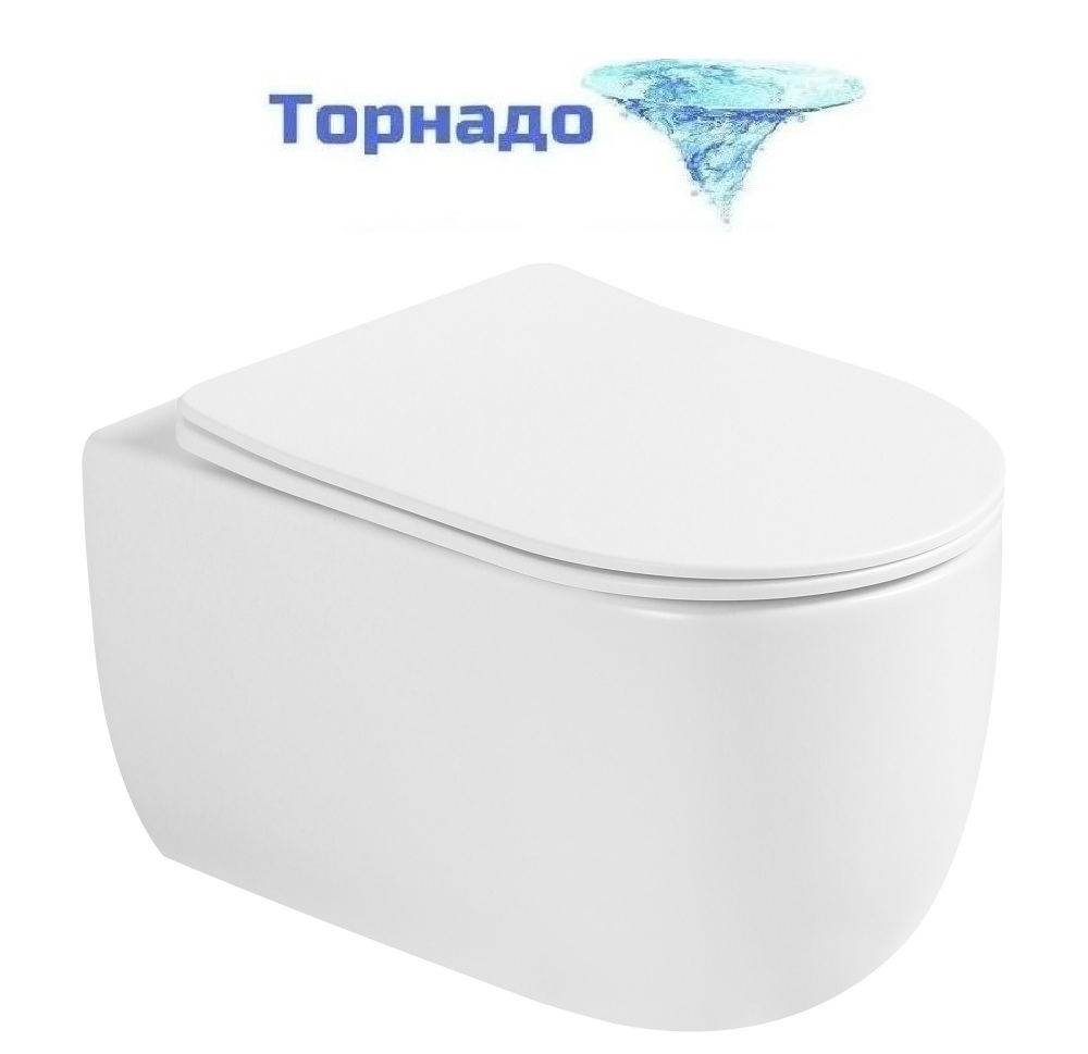 - Торнадо – это инновационная технология смыва, при которой вода подается по кругу чаши, создавая мощный и равномерный поток, тщательно очищающий каждый сантиметр чаши унитаза, не оставляя грязи ни единого шанса.
