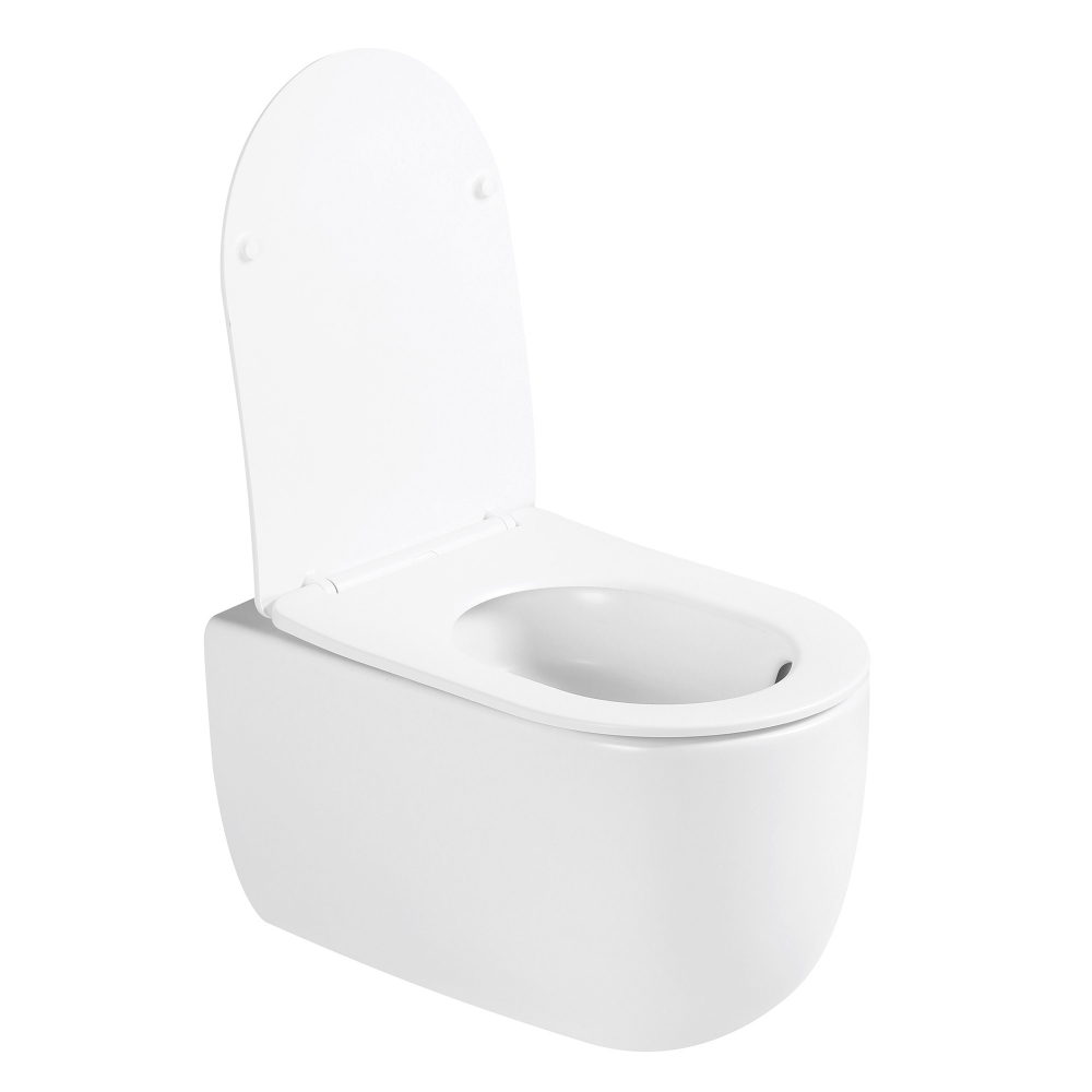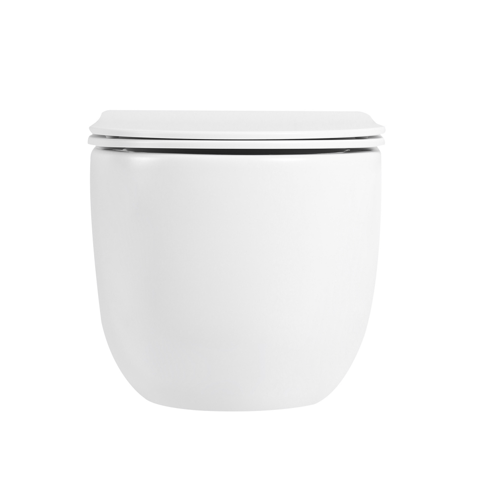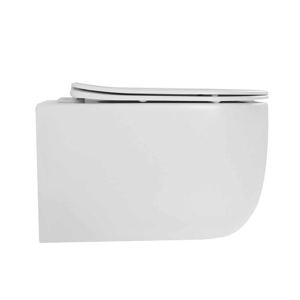 Унитаз подвесной безободковый Abber Bequem AC1104TMW с тонкой крышкой микролифт (система смыва Торнадо) белый матовый