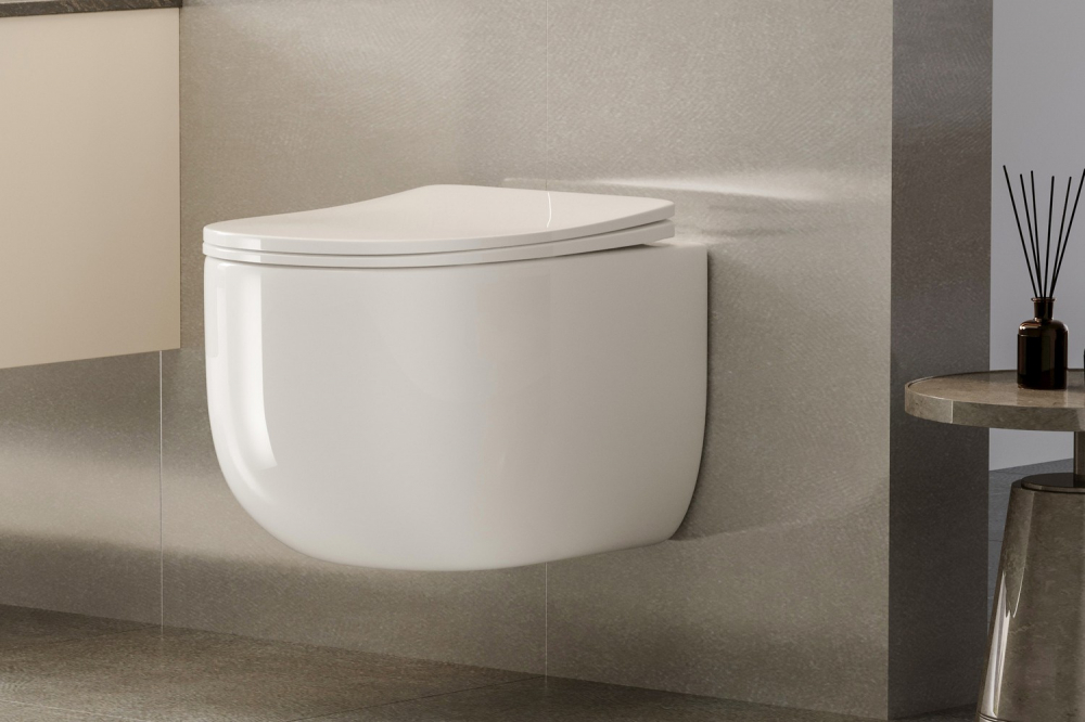 Унитаз подвесной безободковый Abber Bequem AC1104TN с тонкой крышкой микролифт (система смыва Торнадо)