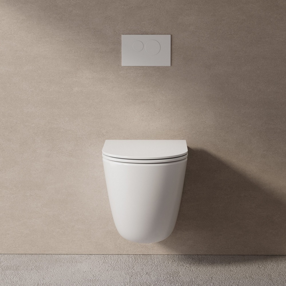 Унитаз подвесной безободковый Abber Bequem AC1132TC, сиденье с тонкой крышкой микролифт, цвет белый.
